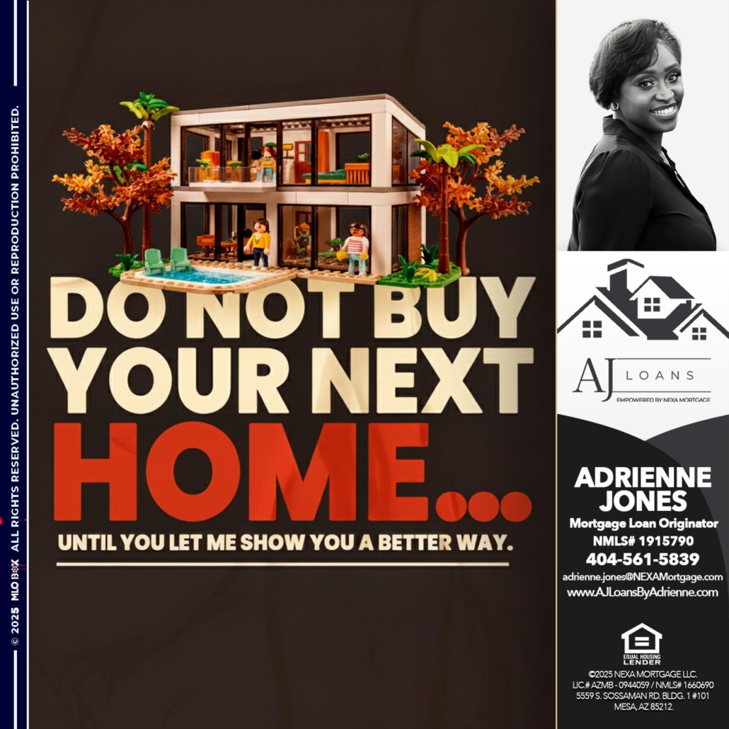 DO NOT - Adrienne Jones -Mortgage Loan OriginatorHi, my name is Adrienne Jones. I’m a Loan Officer with NEXA Mortgage LLC., offering personalized mortgage solutions, fast customized quotes, great rates and service with integrity.