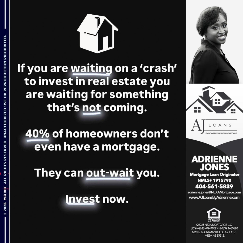Hi, my name is Adrienne Jones. I’m a Loan Officer with NEXA Mortgage LLC., offering personalized mortgage solutions, fast customized quotes, great rates and service with integrity.