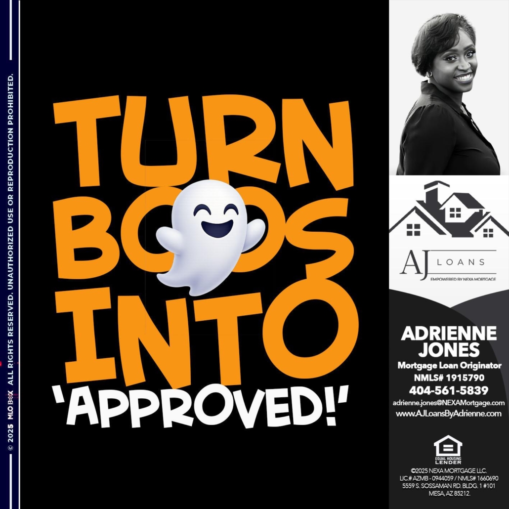 turn boos into - Adrienne Jones -Mortgage Loan OriginatorHi, my name is Adrienne Jones. I’m a Loan Officer with NEXA Mortgage LLC., offering personalized mortgage solutions, fast customized quotes, great rates and service with integrity.
