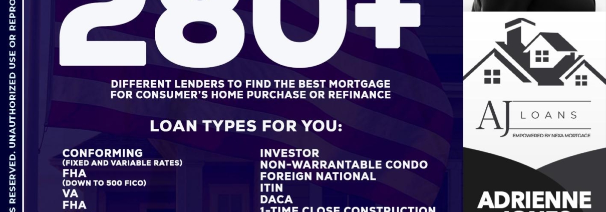 Hi, my name is Adrienne Jones. I’m a Loan Officer with NEXA Mortgage LLC., offering personalized mortgage solutions, fast customized quotes, great rates and service with integrity.